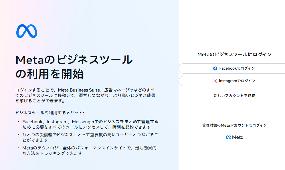 これは、Facebookページや広告アカウント、関わるメンバーを一括管理するためのビジネス専用プラットフォームです 。