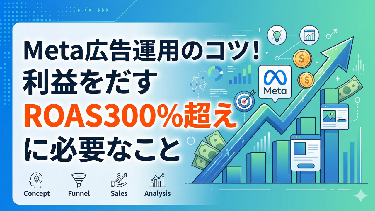 本記事では、Meta広告運用でROAS300%という高い利益率を達成するために必要な具体的なステップや、売れるコンセプトの作り方、高成約率を叩き出すファネル構築の秘訣を詳しく解説します。